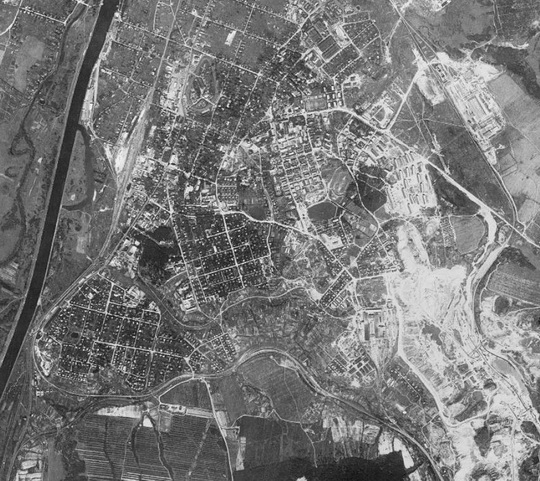 Спутниковый снимок Дмитрова и Яхромы. Снимок сделан 16 июля 1966 года.