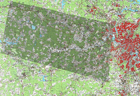Спутниковый снимок - к западу от Москвы. Снимок сделан 21 июня 1971 года.