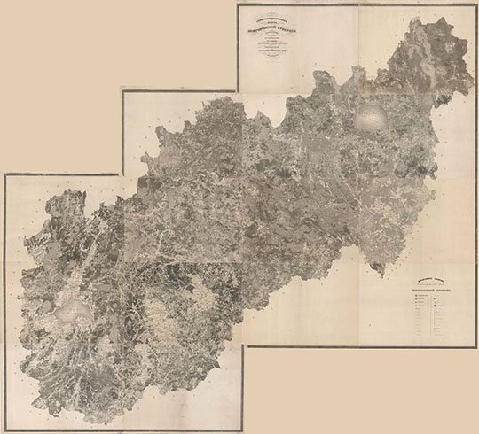 Семитопографическая карта Новгородской губернии. Составлена в 1:210000 долю настоящей величины (5 верст в дюйме) со съемки Корпуса топографов полковника Безкорниловича Михаила Осиповича. Гравирована при Военно-топографическом депо в 1847 году. Отпечатана на 15 листах 62x45 см. с дополнительным сборным листом.