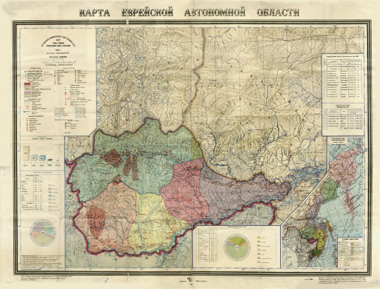 Еврейская Автономная Область. Масштаб 1:400,000. 77 х 109 см. Народный Комиссариат Внутренних Дел СССР. Главное Управление Государственной Съемки и Картографии. 1938г.