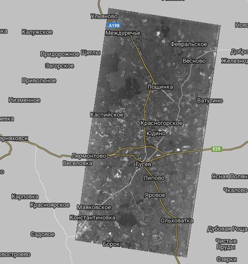 Американский спутниковый снимок Калининградской области - окрестности города Гусева. Дата снимка - 19 августа 1966 года.