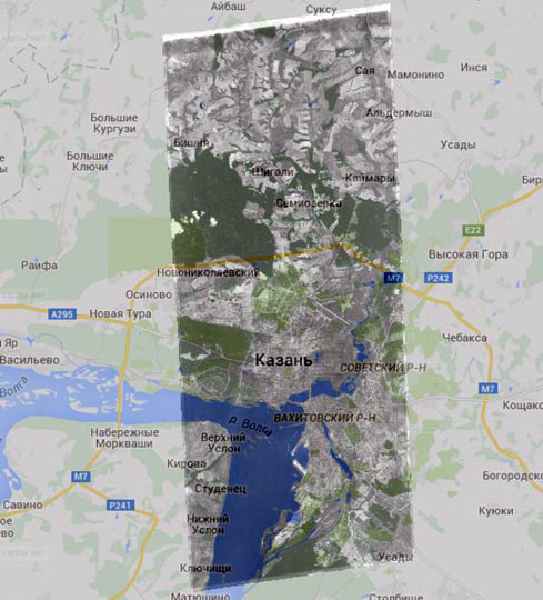 Американский спутниковый снимок Казани и окрестностей. Снимок сделан 7 июня 1966 года.