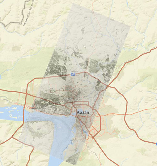 Американский спутниковый снимок Казани и окрестностей. Снимок сделан 19 марта 1966 года.