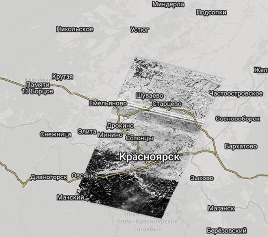 Спутниковый снимок Красноярска. Сделан с американского спутника 03.02.1967