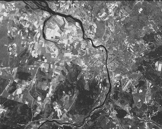 Спутниковый снимок части Пскова с окрестностями. Снимок сделан с американского спутника 18 сентября 1967 года