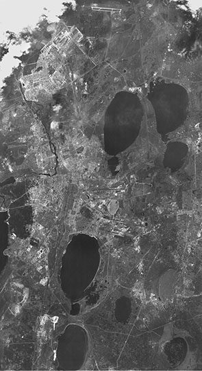 Спутниковый снимок Челябинска с окрестностями. Снимок сделан с американского спутника 23 мая 1967 года
