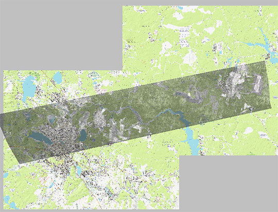 Спутниковый снимок Свердловска с окрестностями, включая Берёзовский и Асбест. Снимок сделан 10 мая 1968 года.