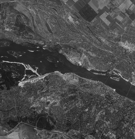 Американский спутниковый снимок города Днепропетровска и окрестностей. Снимок сделан 30 июля 1975 года.