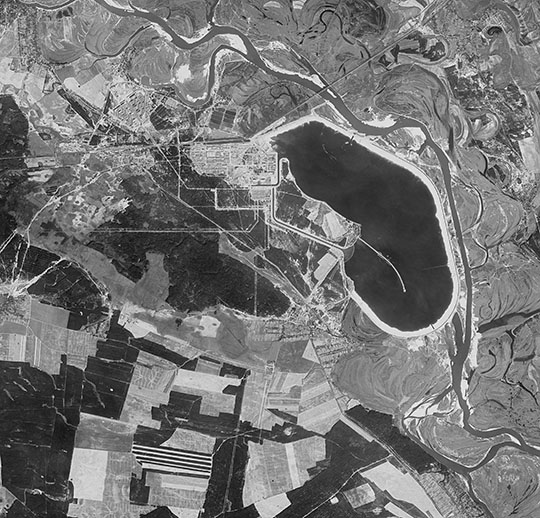 Спутниковый снимок Чернобыля и окрестностей. Снимок сделан 15 сентября 1976 года