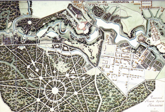 Частный план города Павловска и садов, 1803 г. исполнения А. Бугрееева