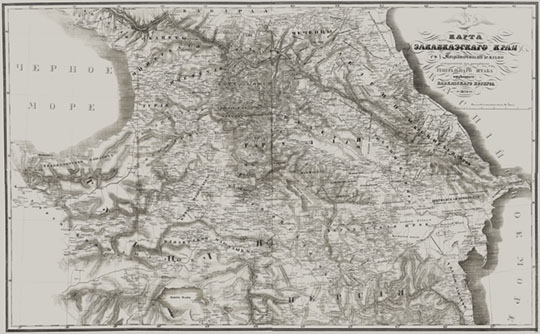 Карта Кавказского Края с Пограничными землями, составленная из материалов Генерального Штаба отдельного Кавказского Корпуса в 1834 году. Масштаб - в английском дюйме 20 верст.