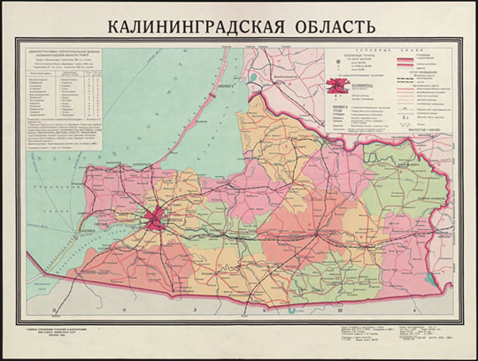 Калининградская область. Главное Управление Геодезии и Картографии при Совете Министров СССР, Москва 1987. 48 х 62 см. Масштаб 1:400,000.