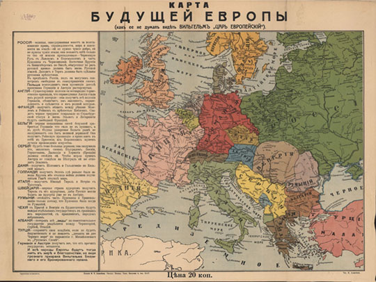 Карта будущей Европы (как ее не думал видеть Вильгельм "Царь Европейский". 53 х 70 см. Издание И.П. Алексеева. 1914-1915 годы.